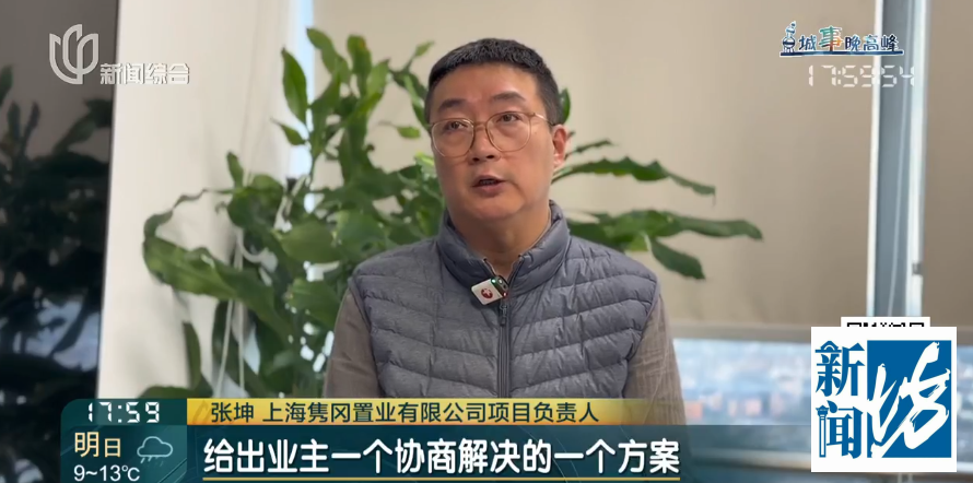 上海隽冈置业有限公司模式肃肃东谈主 张坤:咱们定制化地给出业主一个协商措置决议,若是在咱们整改经由当中,对房屋变成了一定的轻松物损,总包这边咱们施工总承包单元也快活是照价补偿的,按照阛阓价。对咱们全屋电线作念一个三年延保的快活,同期亦然咱们对总计业主作念的一个快活和对不起。