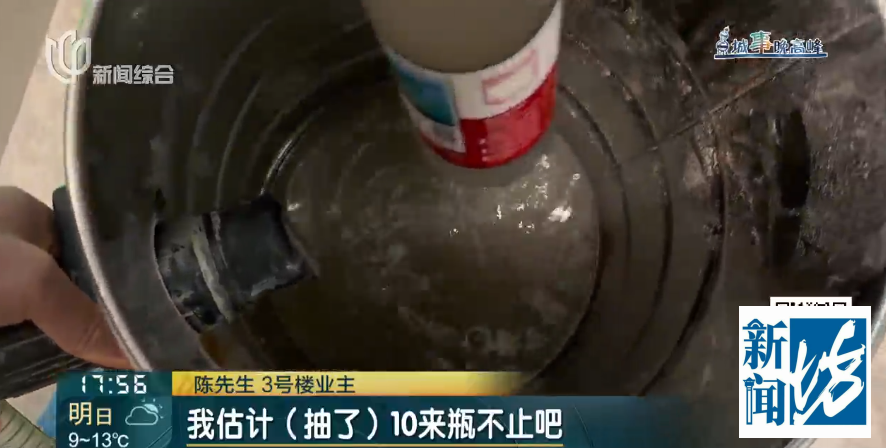 3号楼业主 陈先生:目前他们开垦商抽水换线,刚才阿谁水量算500毫升1瓶,我臆想抽了十来瓶不啻吧。