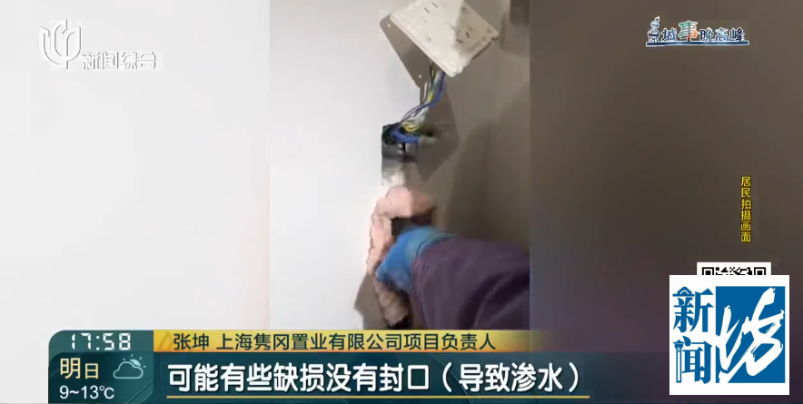 上海隽冈置业有限公司模式肃肃东谈主 张坤:应该是前边施工总承包单元在工序上有所缺失,导致咱们预埋的线盒线管临时保护步调可能有所损坏,在墙体养护的时候,养护水流入了预埋的线管和线盒内导致了积存。通过管制追溯,能够留存有积水是时间有一年傍边。