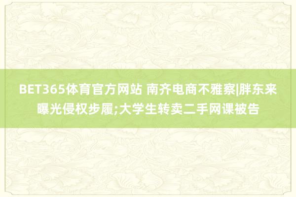 BET365体育官方网站 南齐电商不雅察|胖东来曝光侵权步履;大学生转卖二手网课被告