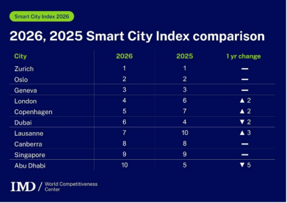 当地时候3月30日,瑞士洛桑国外发展管制学院IMD发布了“智谋城市指数2026”,苏黎世再次位居榜首,奥斯陆和日内瓦辞别位列第二和第三,伦敦和哥本哈根升至第四和第五位。