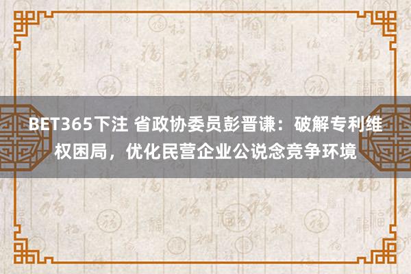 BET365下注 省政协委员彭晋谦:破解专利维权困局,优化民营企业公说念竞争环境