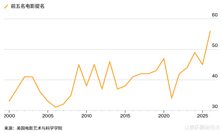 受好莱坞大歇工余波,及大型归并后预算削减的共同作用,好意思国电影大盘握续萎缩,好莱坞大制片厂如今刊行的影片数目比以往任何时候都少,也越来越不合适奥斯卡传统评比模范,致使提名高度承接在少数几部影片上。