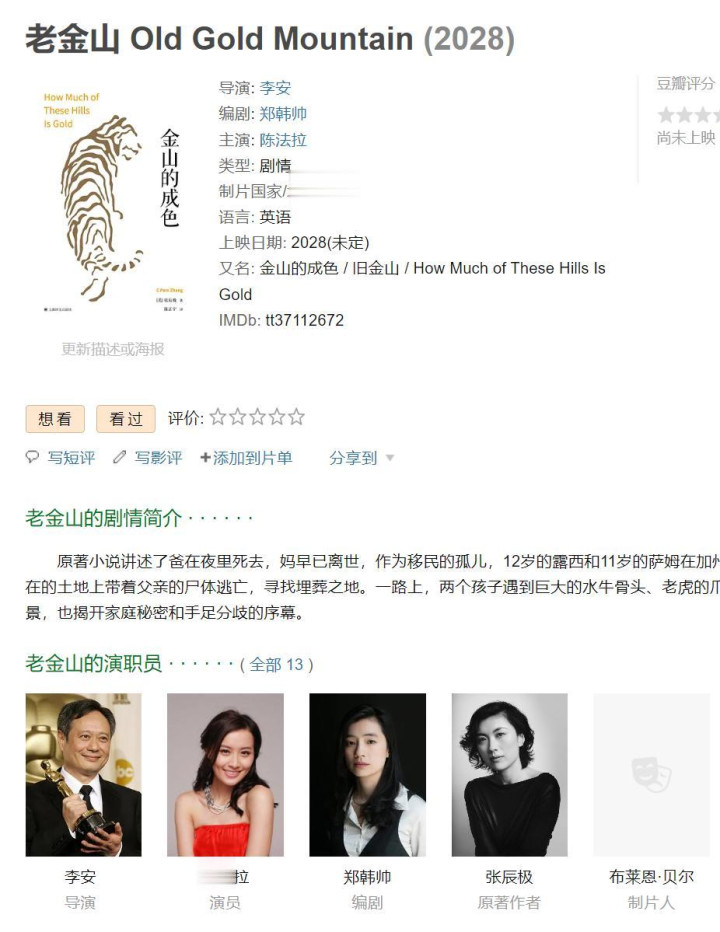 她的作品测度里,又有一个很大的变化,李安筹拍的《老金山》,正本豆瓣要求里章子怡贯通在列,放弃在她上头提到的采访之后,她的名字不见了。不出随机,章子怡详情不会再参与这个技俩。