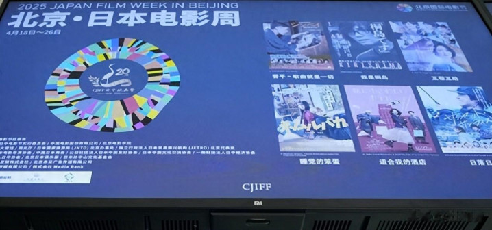 图为“北京·日本电影周”开幕式会场展示的日本作品先容。2025年4月摄于中国北京。(共同社)