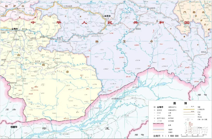 大开藏南舆图或山南、林芝舆图,可见北部地区地名密集,南部地名相对寥落,南部等于印度践诺放胆区。