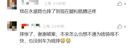 2024年3月24日,上海嘉定区新成路迎园路路口一辆电动自行车在右转时顷刻间打滑跌倒。至本日中午,迎园路、和政路、墅沟路等多个路段,接连发生20屡次东说念主车跌倒事件。