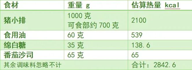 我们来省略计较一下热量,约为2842.6千卡,比拟于单纯的猪小排,翻了近1.5倍,这还不算永劫刻烹煮时骨头中溶出的脂肪带来的热量。