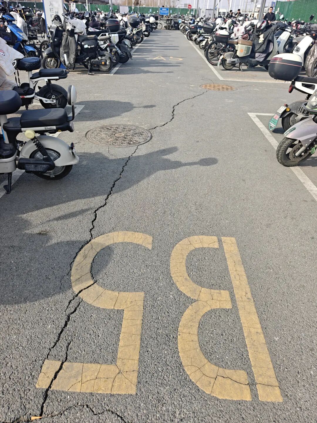 在天通苑北站站口北侧,一大片旷地上停满了电动车。与澈底无序停放的站点不同,这里也曾尝试进行简易分区,大地标有A1、A2、B1、B2等编号。但记者看管到,这些分区领域较大,一个区域时常消散四五十平日米的泊车空间,车多时仍是一派“车海”。