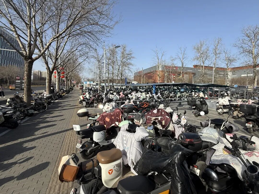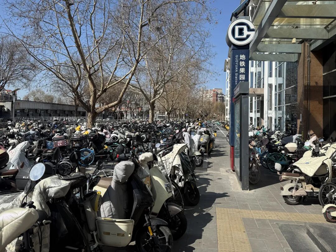 3月3日晚岑岭,记者来到丰台区新宫地铁站。刚走出地铁口,一派密密匝匝的电动车便映入眼帘。相差口邻近的东谈主行谈和非活泼车谈边际停满车辆,红、蓝、黑等各色车身交汇在沿路,从站口一齐蔓延近百米,却看不到较着的分区标志或指引牌。