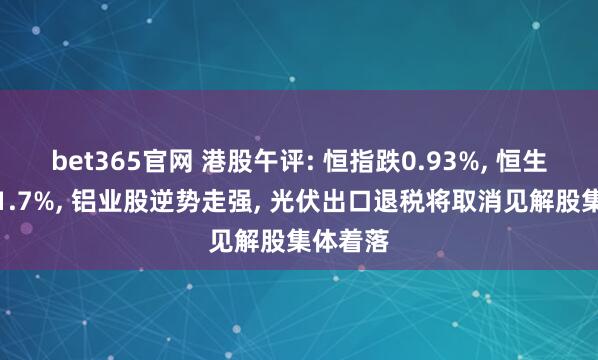 bet365官网 港股午评: 恒指跌0.93%, 恒生科指跌1.7%, 铝业股逆势走强, 光伏出口退税将取消见解股集体着落
