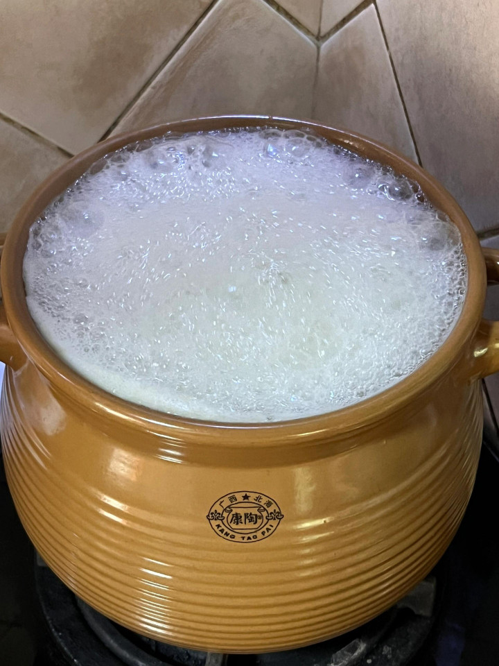 这一锅粗略能滤出两三碗,够一家东说念主喝。我有技术早上喝一碗,剩下的放雪柜,第二天热一下照样昌盛。