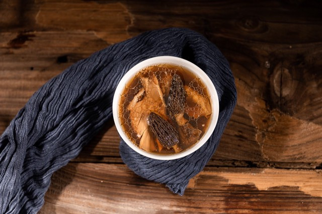 我我方潮湿重,舌苔厚,就把羊肚菌汤里的排骨减半,加一小块茯苓,汤味有点苦,但喝完肚子松快。