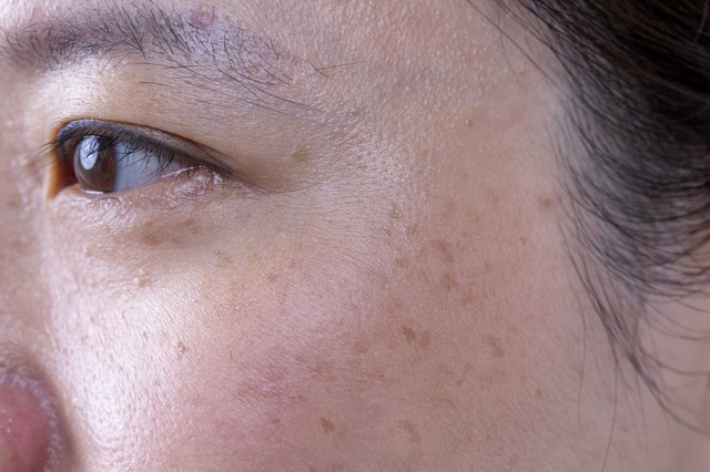 脸上长斑不是光擦脸就能好,肝不好,脸就暗千里没光。
