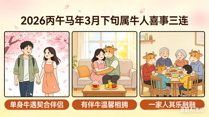 丙午马年,对属牛东说念主来说,不是冲撞,而是动须相应的鼎新。3月下旬,卯木生助,村炮渐旺,分解了一整年的你,终于迎来了属于你的高光本事。三大喜事接连叩门,请你展开双臂,稳稳接住!