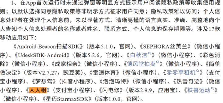 3月31日,国度计较机病毒济急处置中心检测发现71款行恶违纪收罗使用个东说念主信息的迁徙应用,其中东说念主东说念主租、零零享租两款租机平台被点名。