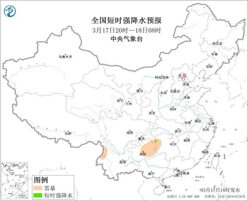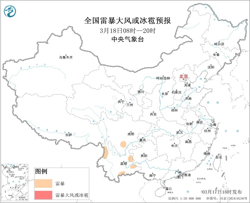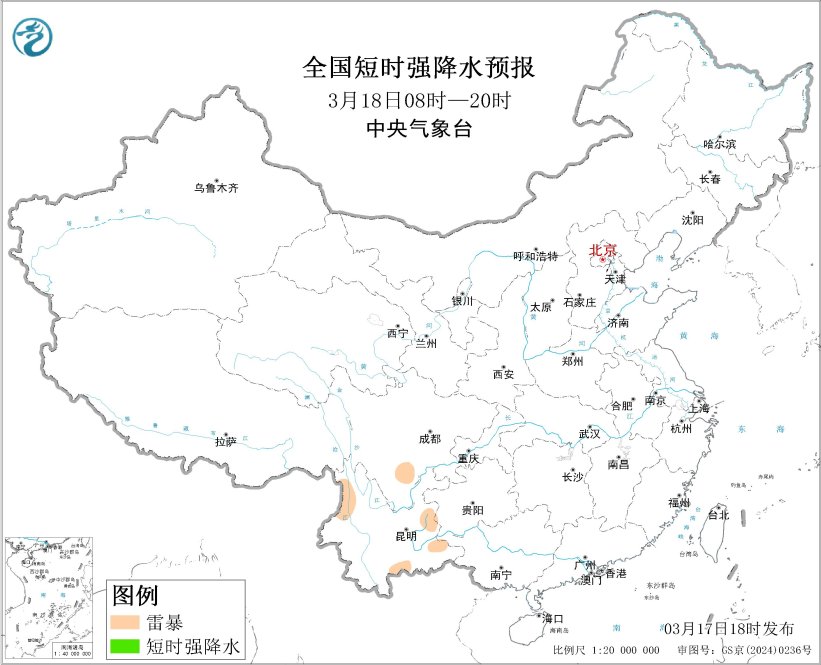 瞻望3月17日20时至18日20时,湖南西部、四川南部、重庆东南部、贵州中东部、云南西北部和东部等地的局地将有雷暴;另外,豪门国际官网娱乐网BET365体育官方网站湖南西部、贵州中部等地的局地将有短时强降水天气,小时雨量20-30毫米。