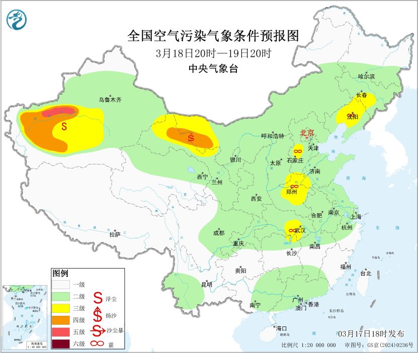 18日,新疆南部、内蒙古中西部、甘肃西部等地的部分地区有扬沙或浮尘天气。改日一周,区域大部大气扩散要求较好,无昭着霾天气。