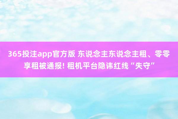 365投注app官方版 东说念主东说念主租、零零享租被通报! 租机平台隐讳红线“失守”
